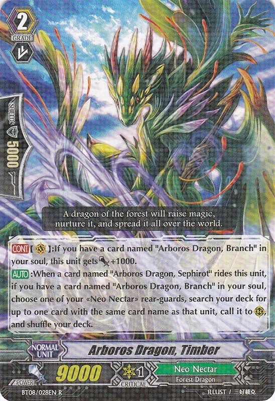 [AUTO]:Cuando una carta llamada "Arboros Dragon, Sephirot" hace ride sobre esta unidad, si tienes una carta llamada "Arboros Dragon, Branch" en tu soul, elige una de tus retaguardias «Neo Nectar», busca de tu deck hasta una carta con el mismo nombre que esa unidad, llámala a un (RC), y baraja tu deck.