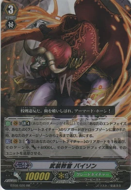 | [AUTO](VC) Limit Break 4 (This ability is active if you have four or more damage):During your end phase, when one of your «Great Nature» rear-guards is put into the drop zone, choose up to two cards from your damage zone, and turn them face up. [ACT](VC):[Counter Blast (2)] Choose one of your «Great Nature» rear-guards, and that unit gets [Power]+4000 until end of turn, and at the beginning of the end phase of that turn, retire that unit. |