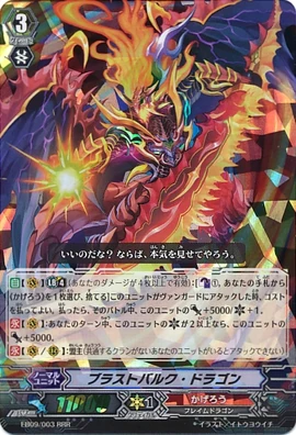 | [AUTO](VC) Limit Break 4 (This ability is active if you have four or more damage):[Counter Blast (1) & Choose a «Kagero» from your hand, and discard it] When this unit attacks a vanguard, you may pay the cost. If you do, this unit gets [Power]+5000/[Critical]+1 until end of that battle. [CONT](VC):During your turn, if this unit's [Critical] is two or more, this unit gets [Power]+5000. [CONT](VC/RC):Lord (If you have a unit without a same clan as this unit, this unit cannot attack) |