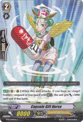 | [AUTO](VC/RC): When this unit attacks, if you have an «Angel Feather» vanguard or rear-guard with Limit Break 4, this unit gets [Power]+3000 until end of that battle. |